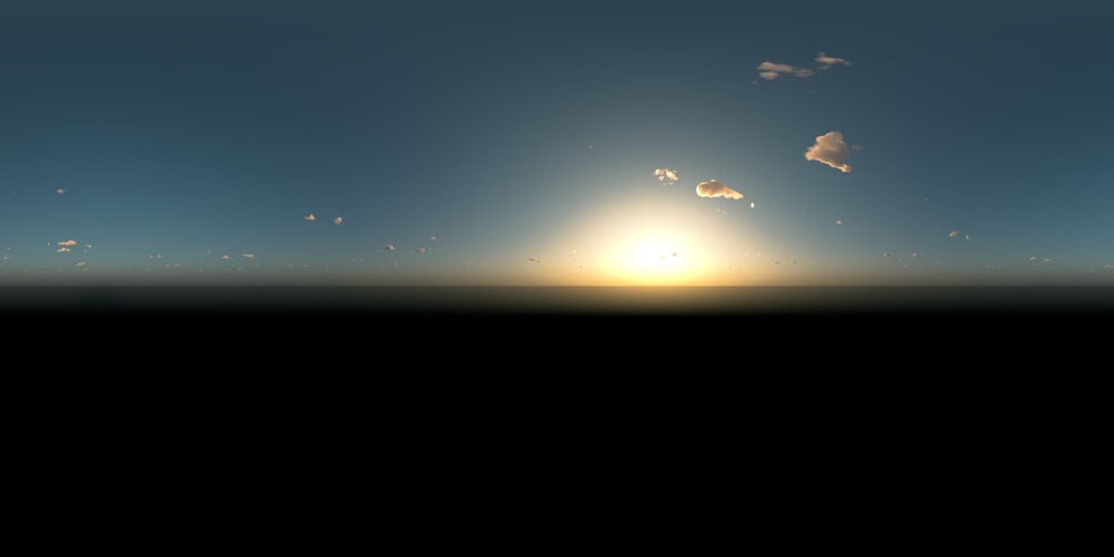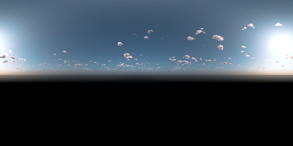 Dont worry about the any black horizon lines in your renderings since the horizon is leveled down and intentionally has a luminance and color cast from the sky.