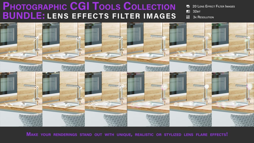 Make your lens effects stylized, realistic and unique by using the 32bit filter images included in this bundle!