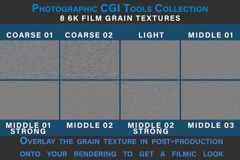 This is the ultimate CGI tools collection to achieve a photographic look! It includes 95 custom bokeh aperture maps, 158 photographic LUTs, film grain, Capture One and Lightroom Presets, V-Ray Lens Effect Filter Images and more!