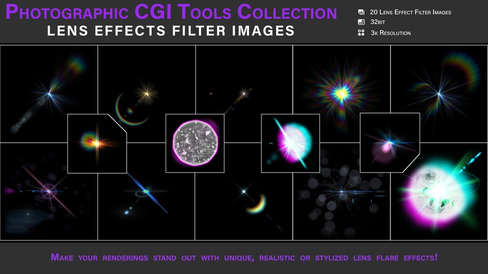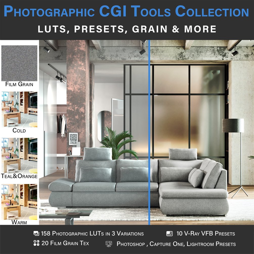 - Photographic CGI Tools Collection – LUTs, Presets, Lens Effects, Grain & more